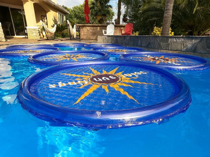 For a more movable and adaptable heating option, solar rings are your go-to. These sun-soaking discs float on your pool's surface, absorbing sunlight and transferring warmth to the water. Spread the rings out over your pool, and they'll efficiently heat your water. Solar rings are straightforward to set up, store, and upkeep, offering a practical and low-cost heating solution. Remember to read the instructions and do not over-inflate them or stack them on top of each other while in the sun, they will melt each other. They're capable of increasing your pool's temperature by a few degrees for a pleasant swim anytime.